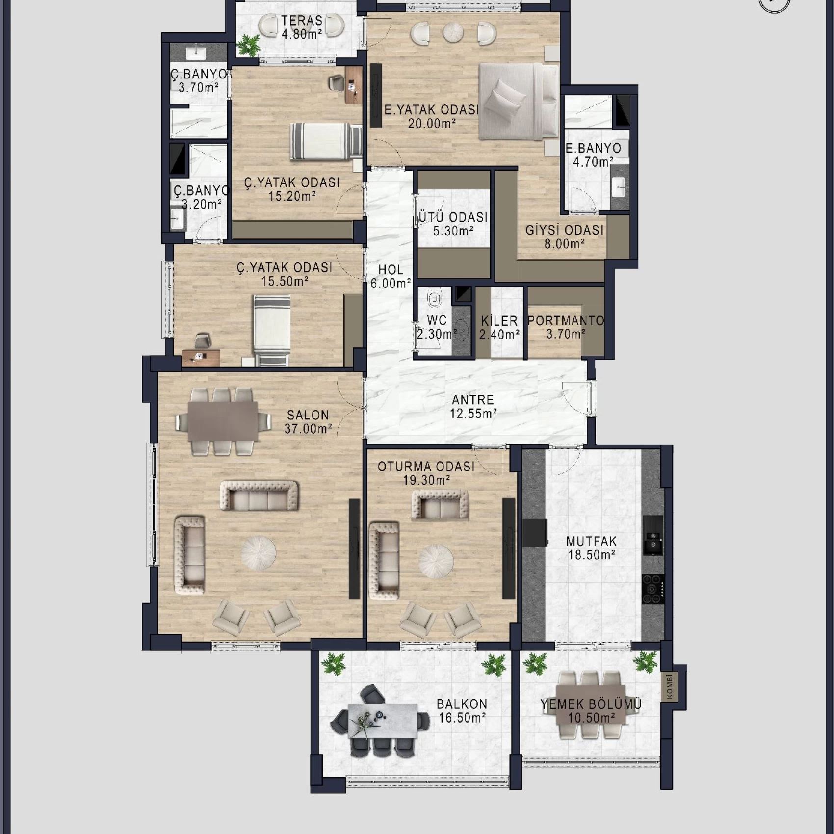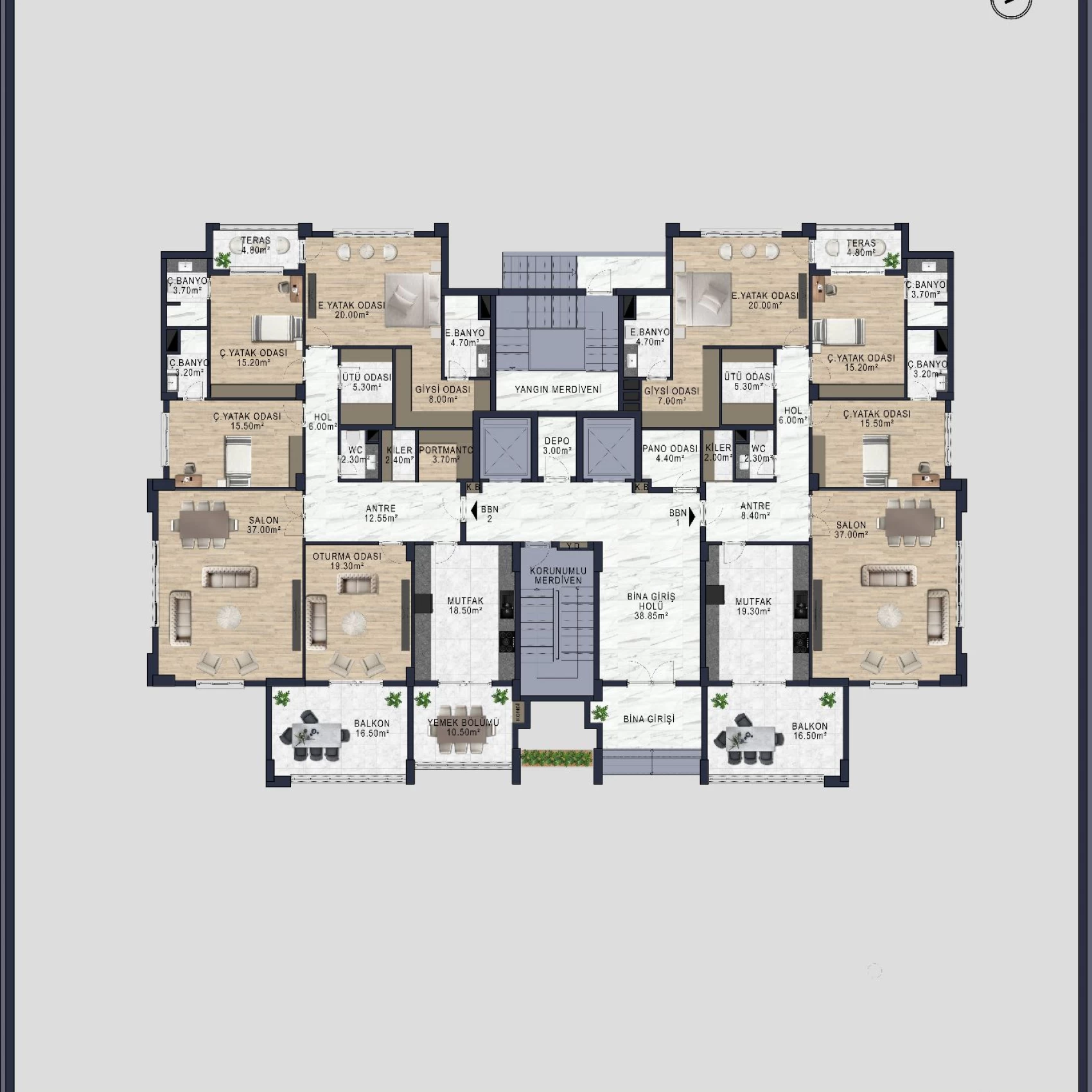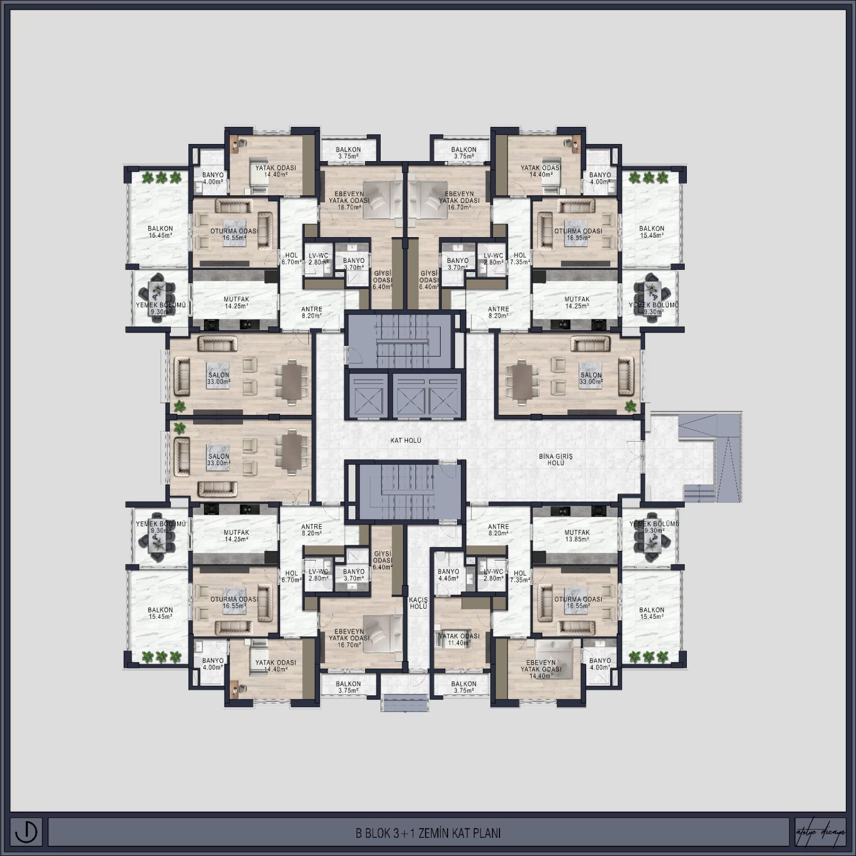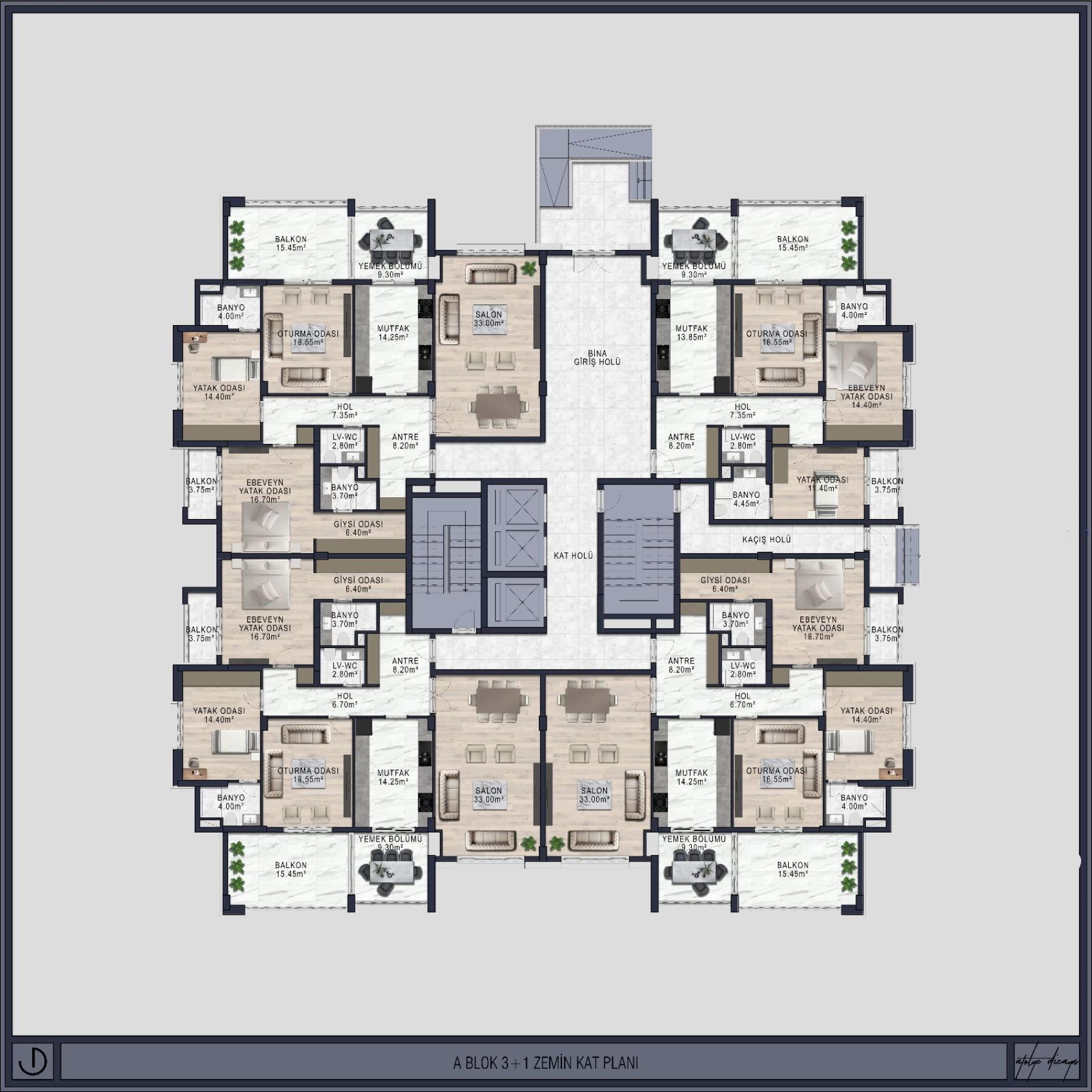AnladımŞehir merkezinde, 9300 m2 yeşil alan üzerine kurulmuş olan, projemiz 3 blok 142 daireden oluşmaktadır. 3,5+1 daireler 2 blok olup her blok zemin üzeri 13 kattan oluşmakta ve her kat 4 daire içermektedir. 4,5 +1 daireler 1 blok olup zemin üzeri 14 kattan oluşmakta ve her katta 2 adet daire vardır. Proje genelinde 111 adet 3,5+1 ve 29 adet 4,5+1 daire bulunmaktadır.